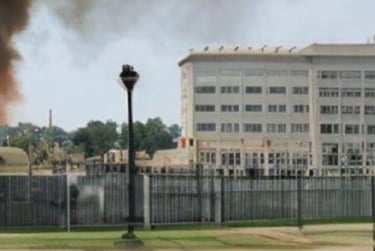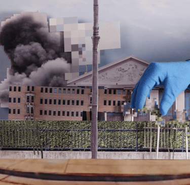 Even the building in the background doesn't represent the Pentagon, but vaguely resembles a neo-classical building, that can be associated with the government.